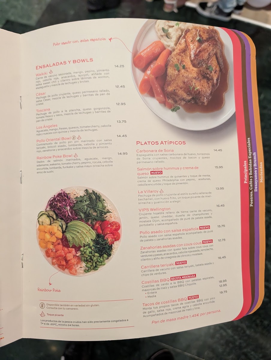 VIPS in Castelló de la Plana offers a vibrant blend of flavors that satisfy diverse palates. Their menu shines with standout dishes like the Rainbow Poke Bowl, featuring marinated salmon, avocado, mango, and a zesty sriracha mayo over sushi rice—fresh, balanced, and colorful. The Pollo Oriental Bowl delights with tender teriyaki-marinated chicken and roasted broccoli, delivering an Asian-inspired comfort. Gluten-free options such as the fluffy Gluten-Free Pancakes with Whipped Cream and hearty Tex Mex Nachos add inclusivity without sacrificing taste.